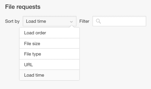 Ora, per identificare il motivo di un lungo tempo di caricamento, devi ordinare la “cascata” di Pingdom, scegliendo “tempo di caricamento” dal menu.