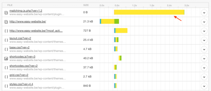 Dal primo sguardo alla cascata di Pingdom, ho potuto immediatamente individuare la causa del problema. Leggi attentamente le righe di questa tabella: