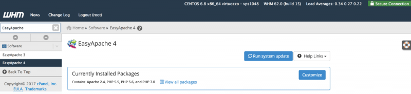 Tutto funziona sotto: WHM → Software → EasyApache 4.