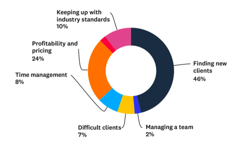 In effetti, quasi la metà dei web designer afferma che, più di ogni altro aspetto del loro lavoro, trovano difficile scoprire nuovi clienti.